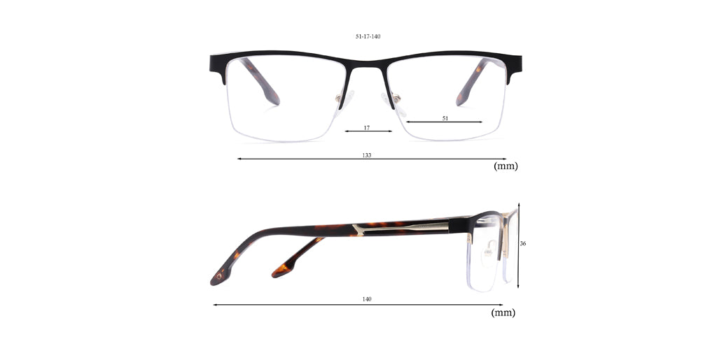 Rectangle Half Frame Eyeglasses