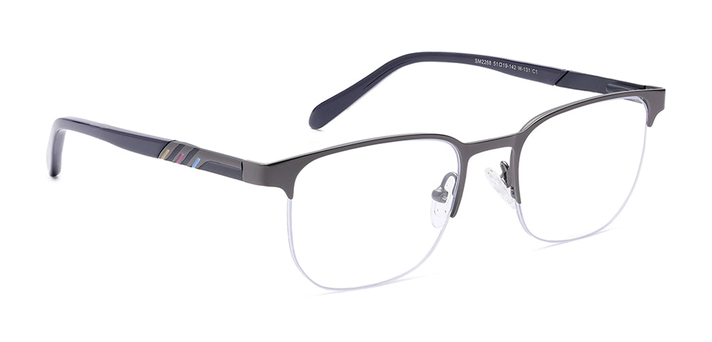 Introducing the "Specsmakers Blue Zero" Unisex Eyewear, a fusion of style and functionality specially designed for you. This Half Frame boasts a classic Square shape, perfect for both professional and casual settings. Crafted with lightweight yet durable Metal, it ensures all-day comfort without compromising on durability. Available in a versatile Medium size, it fits a wide range of face shapes with ease. Product Code: SM XJ2268. Elevate your eyewear game with Specsmakers today!