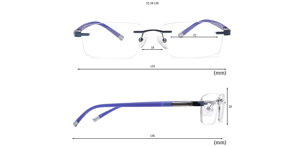 Rectangle Rimless Computer Glasses