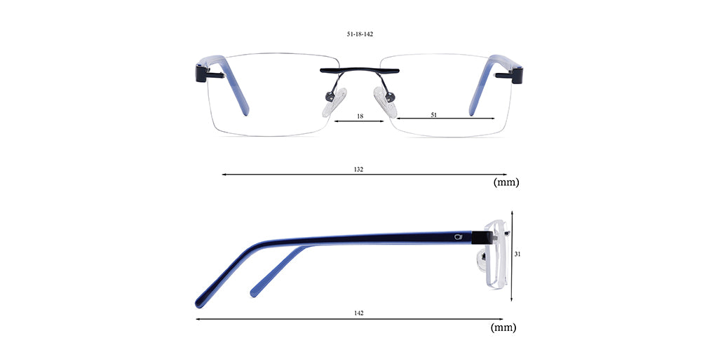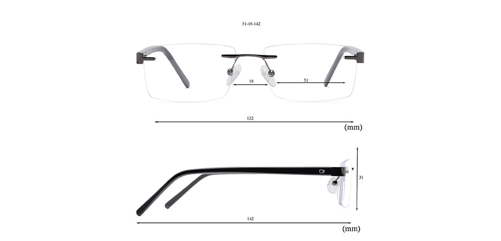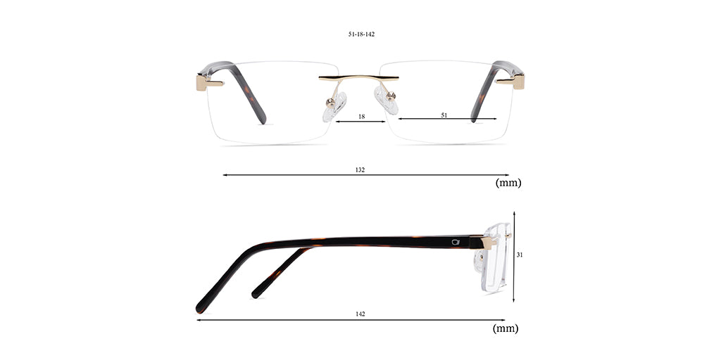 Rectangle Rimless Computer Glasses